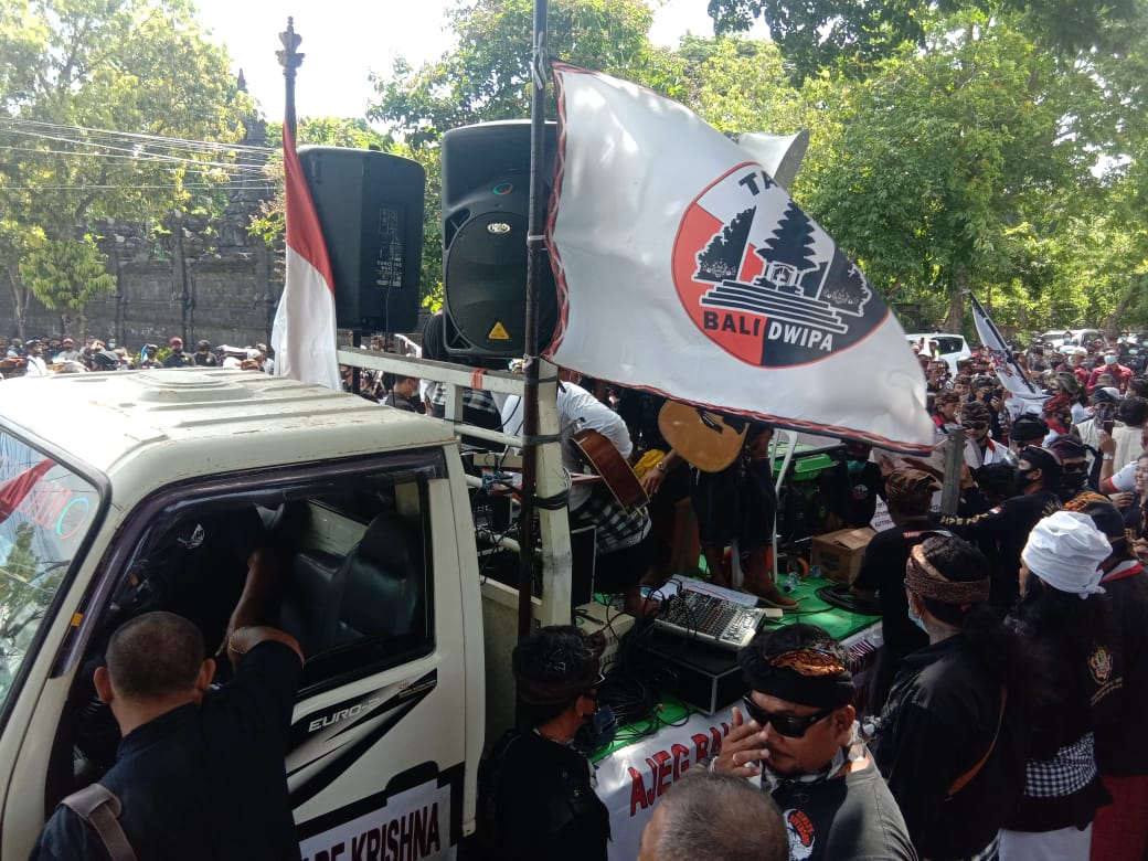 BALI – Aksi demo terkait ucapan Anggota DPD RI, Arya Wedakarna (AWK) tentang seks bebas dan juga Bethara yang disebut mahluk suci, kembali dilakukan oleh massa dari 44 elemen yang tergabung ke dalam Forkom Taksu Bali.
