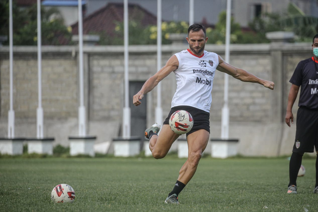 BALI – Penyerang Bali United, Ilija Spasojevic menyusul rekannya Nadeo Arga Winata dan Kadek Agung Widnyana Putra menuju pemusatan latihan Timnas Indonesia.