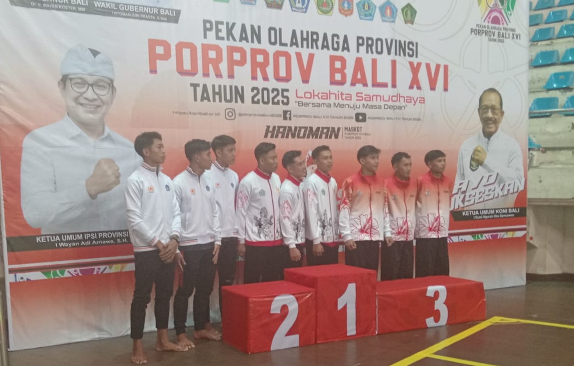 Bertanding di GOR Lila Bhuana Denpasar, Sabtu (6/9/025), trio pesilat putra Denpasar terdiri dari I Kadek Adi Santosa, Made Aldi Sancitayasa dan Made Ananta Pradnya dengan kekompakan dan kerapian gerakan mendapatkan poin 9.940 dengan waktu 3 menit.