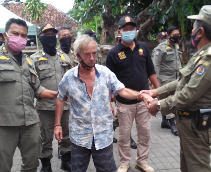 DENPASAR – Satpol PP Kota Denpasar mengamankan bule asal Jerman yang mengamuk karena depresi di sebuah hotel di bilangan Semawang Sanur, Rabu (7/10/2020). Penertiban ini dilakukan setelah mendapat laporan dari pegawai hotel.