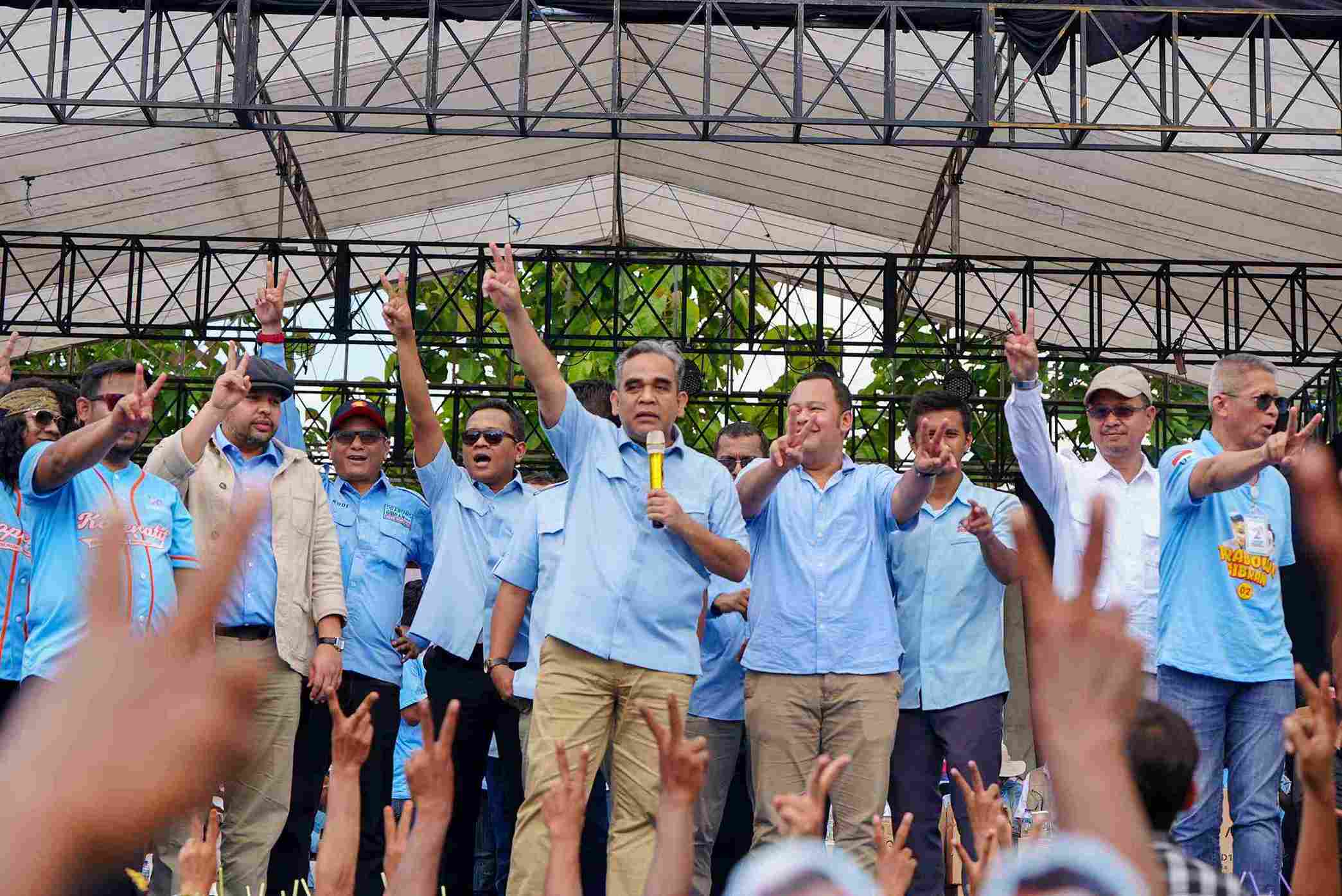Sekjen Partai Gerindra Ahmad Muzani menghadiri kampanye akbar Prabowo-Gibran di dua titik di wilayah Kabupaten Brebes dan Kabupaten Tegal pada Kamis (8/7). Kampanye ini juga dihadiri sejumlah pimpinan TKN Prabowo-Gibran seperti Komjen Pol (purn) Chondro Kirono, Sudaryono, Juri Ardiantoro, Edi Buiarso, dan Hekal Hasan.
