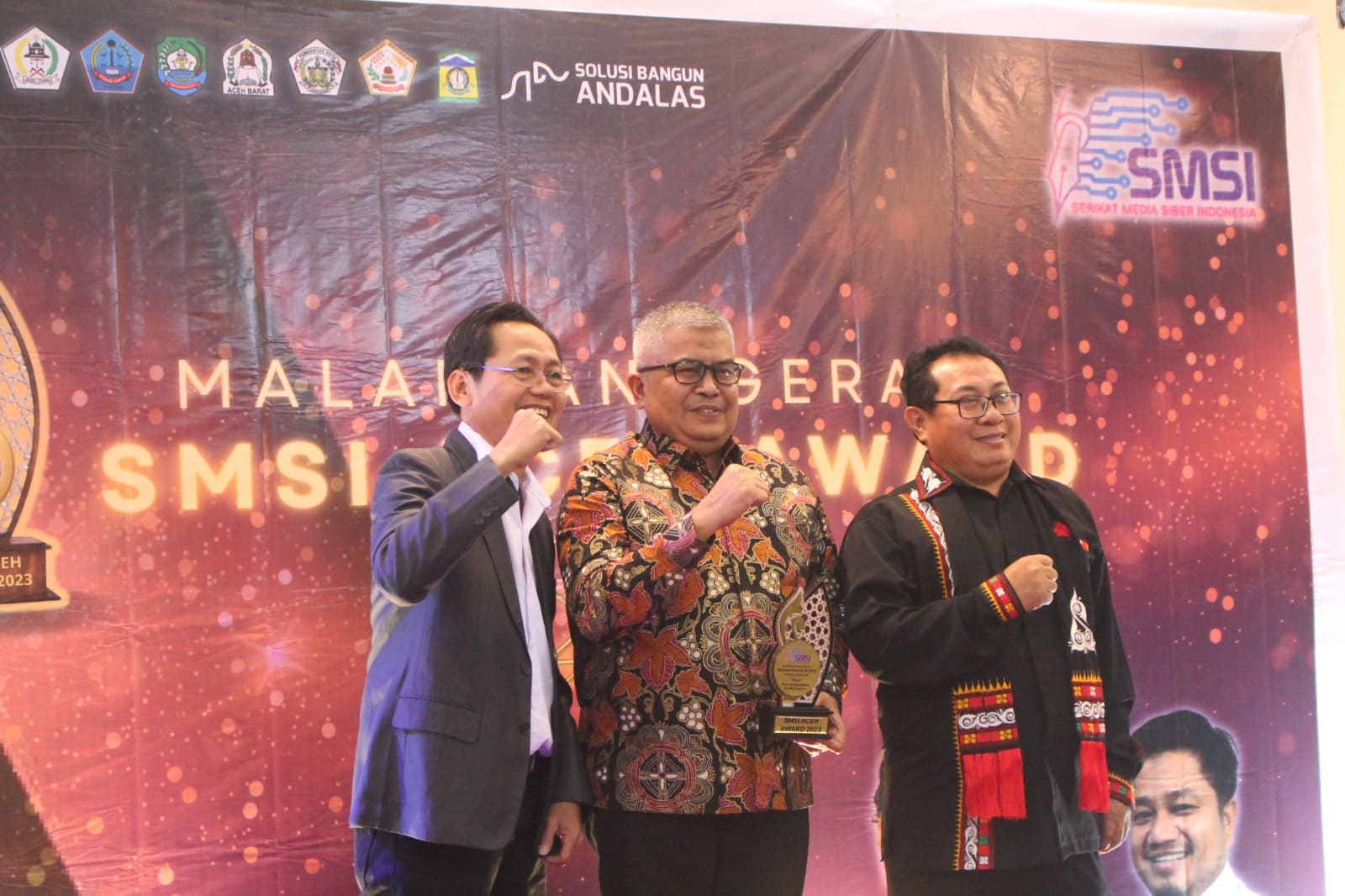 Penyerahan anugerah itu langsung diberikan oleh Ketua Umum Serikat Media Siber Indonesia (SMSI) Pusat, Firdaus didampingi Ketua SMSI Aceh, Aldin Nl, yang diterima Bustami Hamzah pada malam Anugerah SMSI Aceh Award 2023 di Parkside Petro Gayo Hotel di Takengon, Senin malam (8/9/2023).