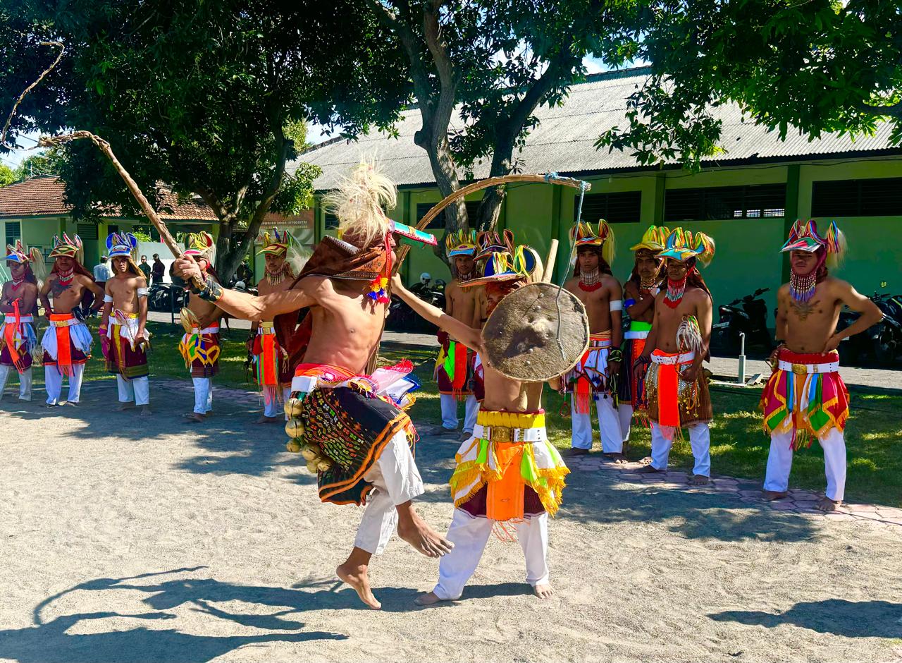 Dalam rangka menyambut HUT RI ke 79, Himpunan Mahasiswa Pariwisata Manggarai Bali menggelar pentas budaya. Jenis kesenian yang ditampilkan adalah tarian Caci. Caci sendiri adalah tarian perang atau permainan rakyat asal Manggarai, Flores, NTT yang melibatkan dua pria saling bertarung menggunakan cambuk.