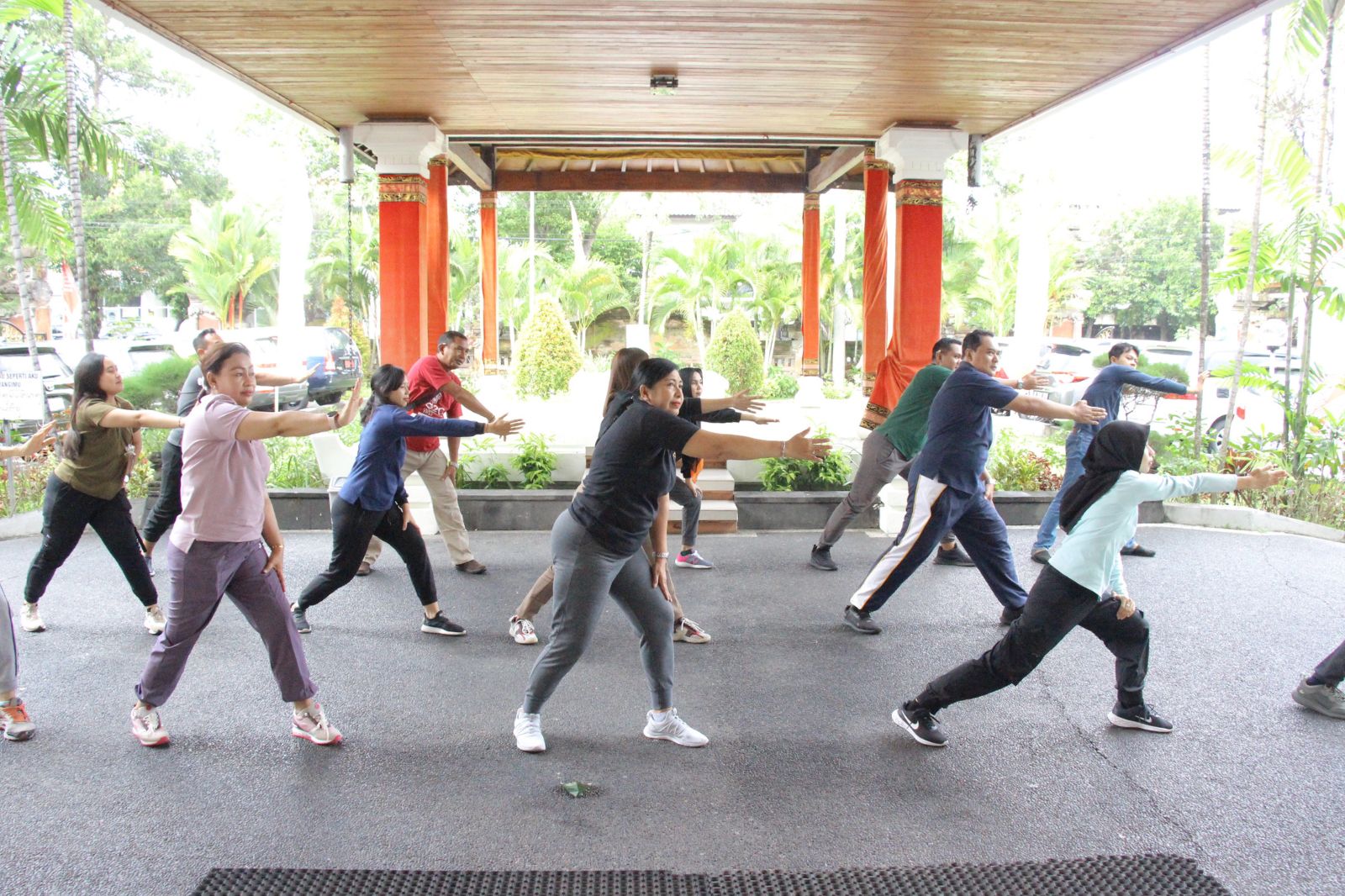 Jajaran Kantor Wilayah Kementerian Hukum dan HAM Bali juga mengikuti senam pagi ini bertempat di halaman kantor secara virtual. Diharapkan dengan mengikuti senam pagi secara rutin, ASN Kantor Wilayah Kementerian Hukum dan HAM Bali tetap dalam keadaan sehat secara jasmani sehingga dapat berkinerja dengan baik menuju Kementerian Hukum Dan HAM yang semakin Produktif.