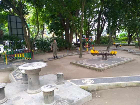 BALI – Tim Yustisi Kota Denpasar kembali melaksanakan penertiban protokol kesehatan (prokes) Pelaksanaan Pembatasan Kegiatan Masyarakat (PPKM) di Lapangan Puputan Badung I Gusti Ngurah Made Agung, Kamis, (15/14/2021).