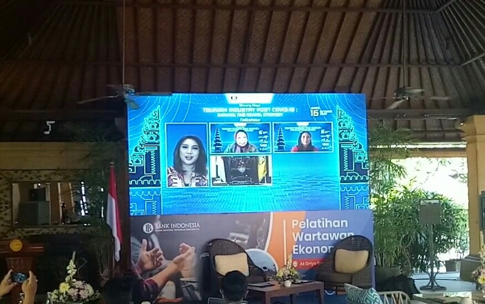 CHANNELBALI Sanur | Wakil Menteri Pariwisata dan Ekonomi Kreatif Angela Tanoesoedibjo tampil dalam dialog virtual ‘Tourism Industry Post Covid-19: Survival dan Revival Strategy’, yang digelar BI di Griya Santrian Sanur Bali, Jumat, 16/10/2020.