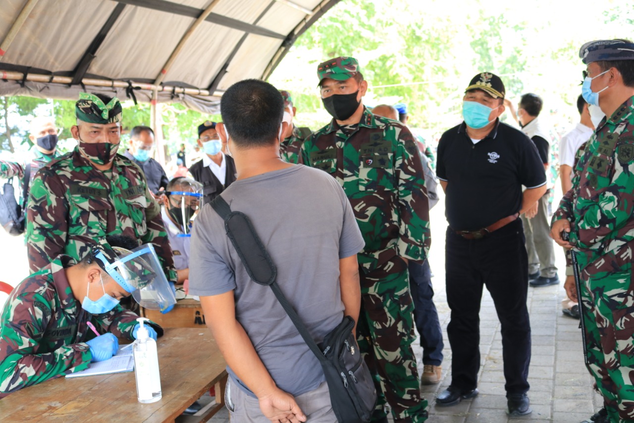 BALI – Penerapan rapid test antigen bagi para pelaku perjalanan menuju Bali, khususnya di Pelabuhan Gilimanuk, mendapat atensi Pangdam IX/Udayana, Mayjen TNI Maruli Simanjuntak.