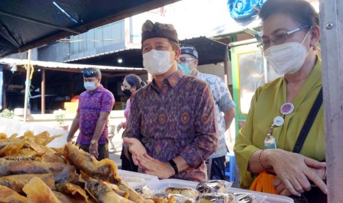 KLUNGKUNG, Balifactualnews.com – Bupati Klungkung I Nyoman Suwirta bersama Balai Besar Pengawasan Obat dan Makanan Denpasar melakukan sidak makanan dan minuman berbuka puasa atau takjil di Pasar Senggol Semarapura, Klungkung, Kamis 22 April 2021 sore.