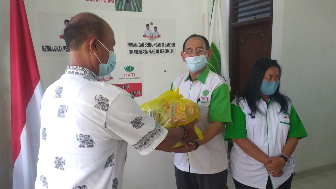 Pada acara penyerahan bantuan tersebut, HKTI Bali mendapat 100 paket sembako.
