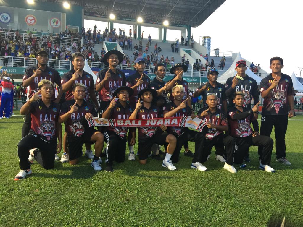BALI – Cabang olahraga cricket mempersembahkan medali emas pertama bagi kontingen Bali di ajang Pekan Olahraga Nasional (PON) XX/2020 Papua dari nomor super sixes putra setelah mengalahkan tim tuan rumah Papua 76-63 di Lapangan Cricket Doyo Baru, Minggu (26/9/2021).