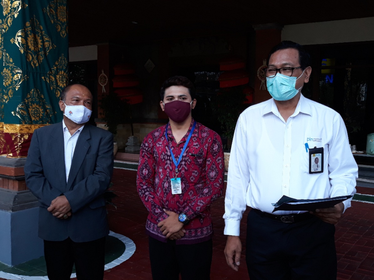 (Tengah) Ketua Panitia BUMN CSR Awards 2020, Wahyu Widiana, SE., MSi, didampingi Dewan Juri, Drs. IB putu Sudiarta, SPD., M.si, (Kiri) serta SRM General Affairs PLN Bali, Putu Priyatna (Kanan).