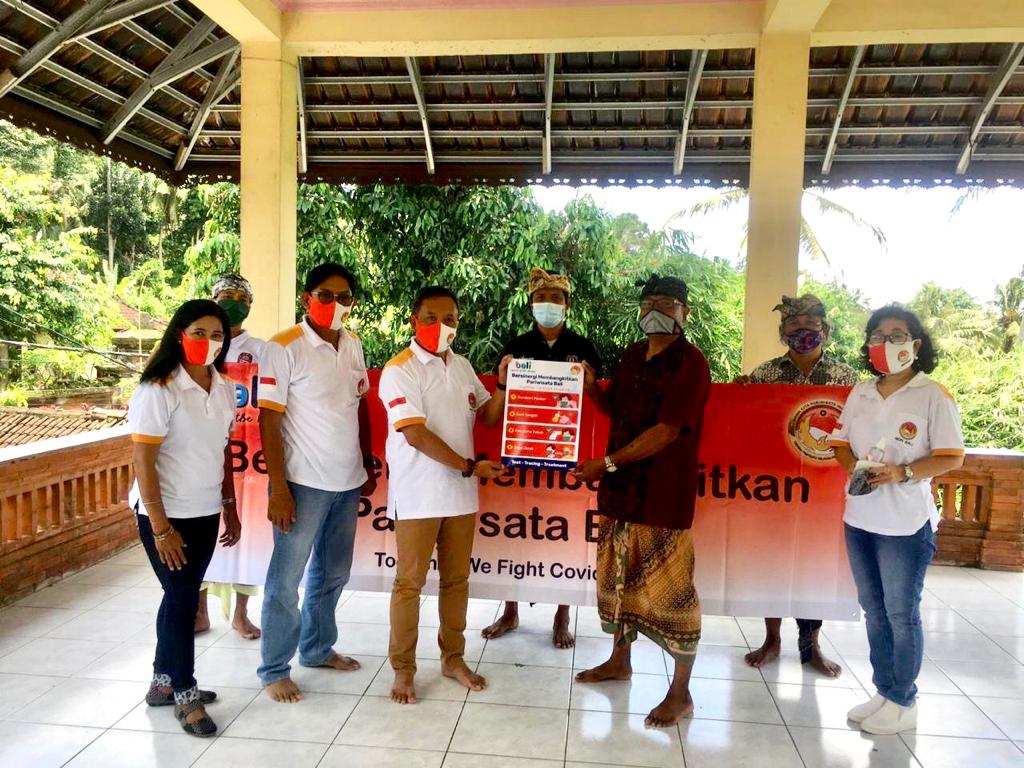 Dengan memberikan sumbangan berupa Masker, Hand sanitizer dan sekaligus pemasangan banner/spanduk/sticker di 7 Desa Wisata Unggulan, empat kabuapten (Gianyar, Badung, Tabanan dan Karangasem).