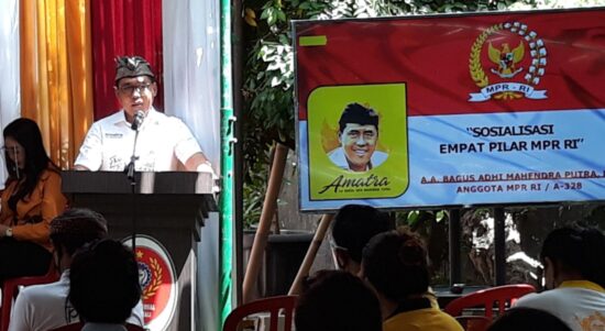 Anggota Badan Sosialisasi MPR RI AA Bagus Adhi Mahendra Putra (Amatra) dan peserta usai Sosialisasi Empat Pilar MPR RI, Sabtu (3/10/2020).