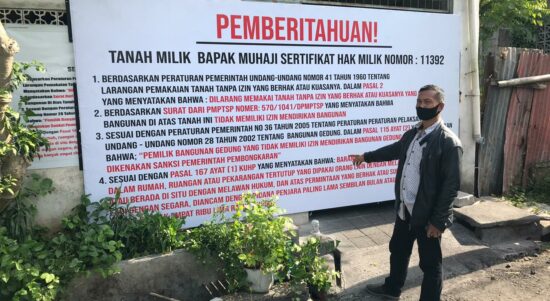 Muhaji usai menyegel lahan miliknya. (ist) BALI – Muhaji pemilik lahan sekaligus pemegang SHM 11392 yang berlokasi di Jalan Batas