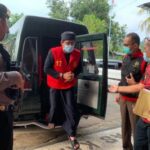 Perbekel Desa Tianyar Barat, I Gede Agung Pasrisak Juliawan turun dari mobil tahanan Kejari Karangasem untuk ditahan di Lapas Karangasem KARANGASEM, Balifactualnews.com—Terangka